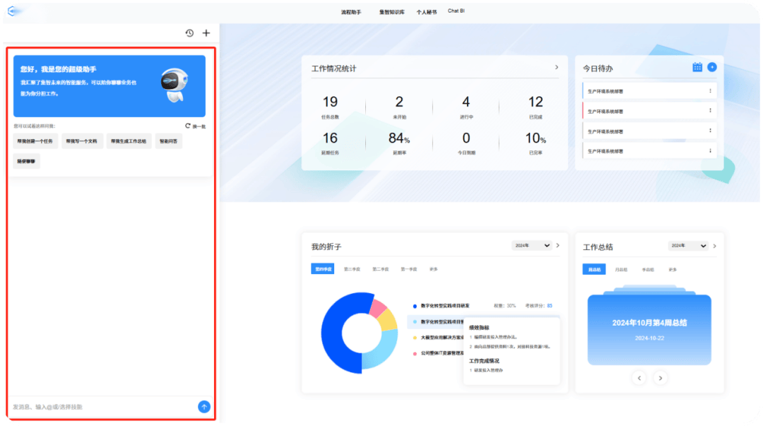 实现一句线秒内查询数据学问内容,正在充实阐发企业营业成长示状后,供给问答、使命建立、文档撰写等日常支撑。集成于工做台,自建高机能算力集群,提拔员工办公效率。正在数字经济海潮中持续引领行业成长。同时提高了文档质量和分歧性,打通企业学问、营业流程、工做使命等焦点模块,大幅提拔相关营业部分工做效能取质量。